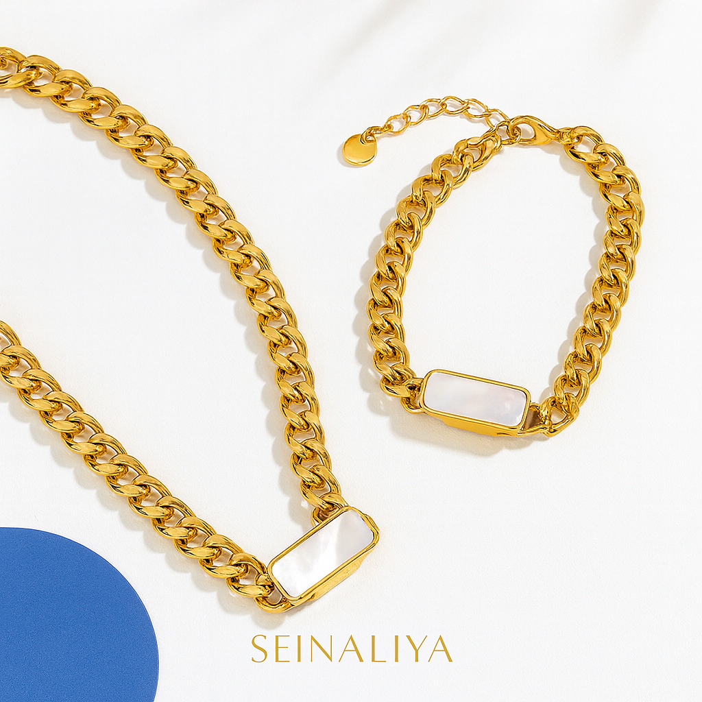 Parure collier + bracelet en acier inoxydable – un duo élégant et intemporel.